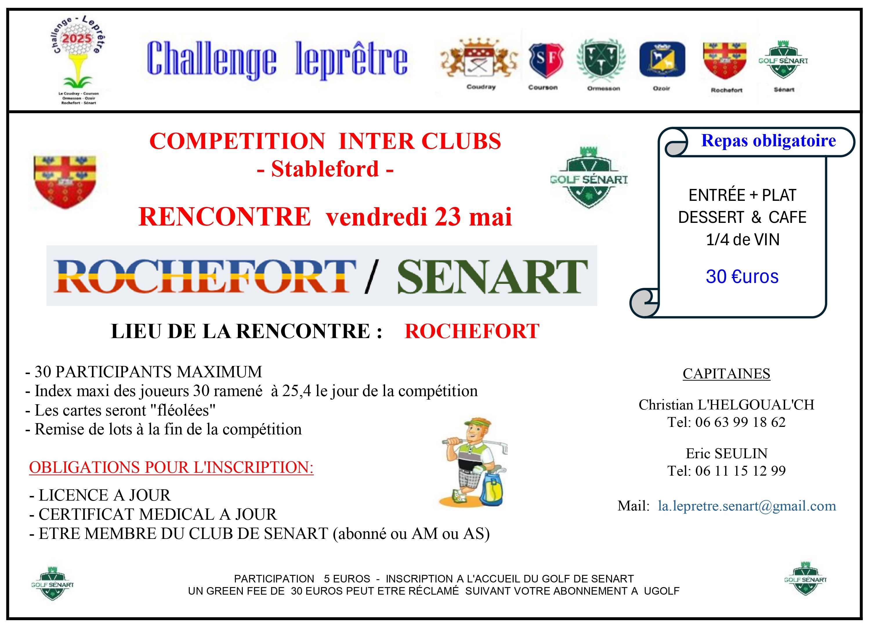 Vendredi 23 mai 2025 - Rochefort / Sénart - Inscriptions (à l'accueil du golf)